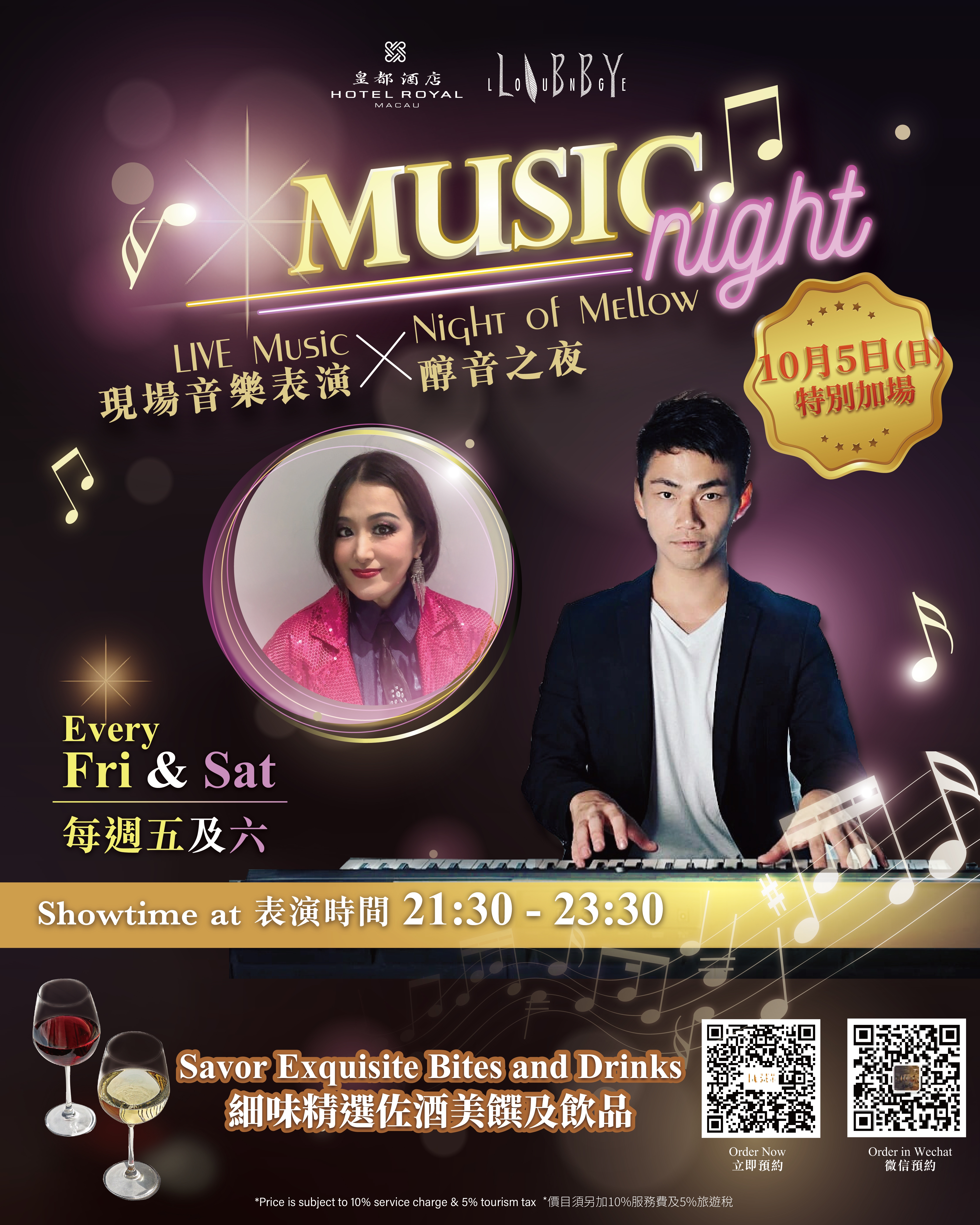 To celebrate National Day and the Mid-Autumn Festival, The Lobby Lounge presents special additional live performances on Oct 5. Book your seat now and immerse yourself in a romantic autumn night.